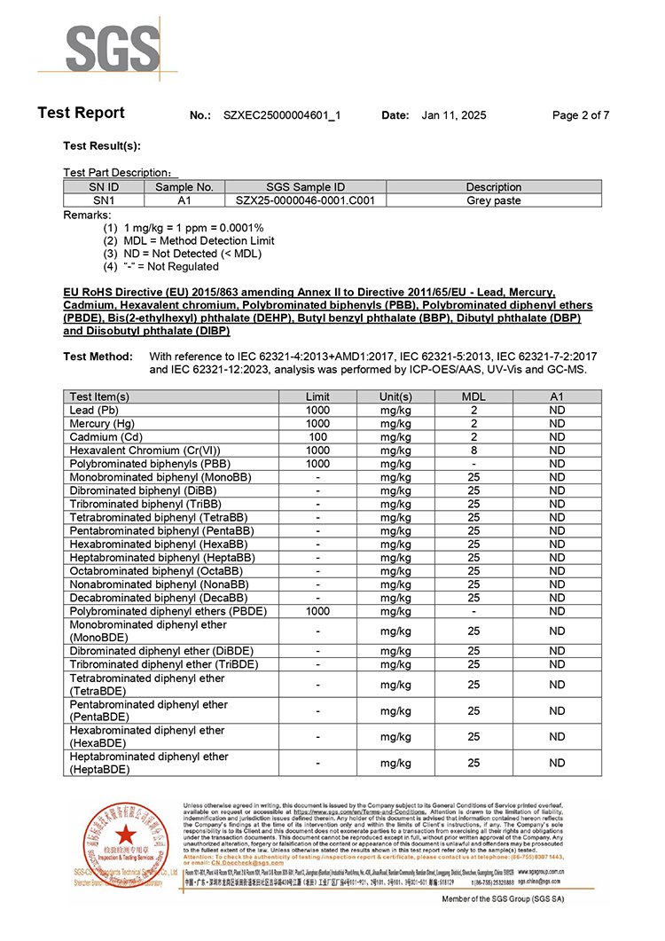 Thermal grease 2025 latest version of rohs report